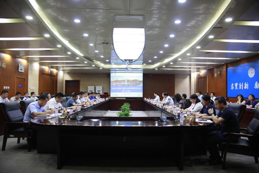 7月22日,第二医院院长张学文、党委书记赵伟、副院长秦彦国、科研部主任冀慧玲及医院科研人员一行23人与我院举办首次学术沙龙。院长吕中元、党委书记宁德宽;研究生院院长、超分子结构与材料国家重点实验室主任孙俊奇;成人网站