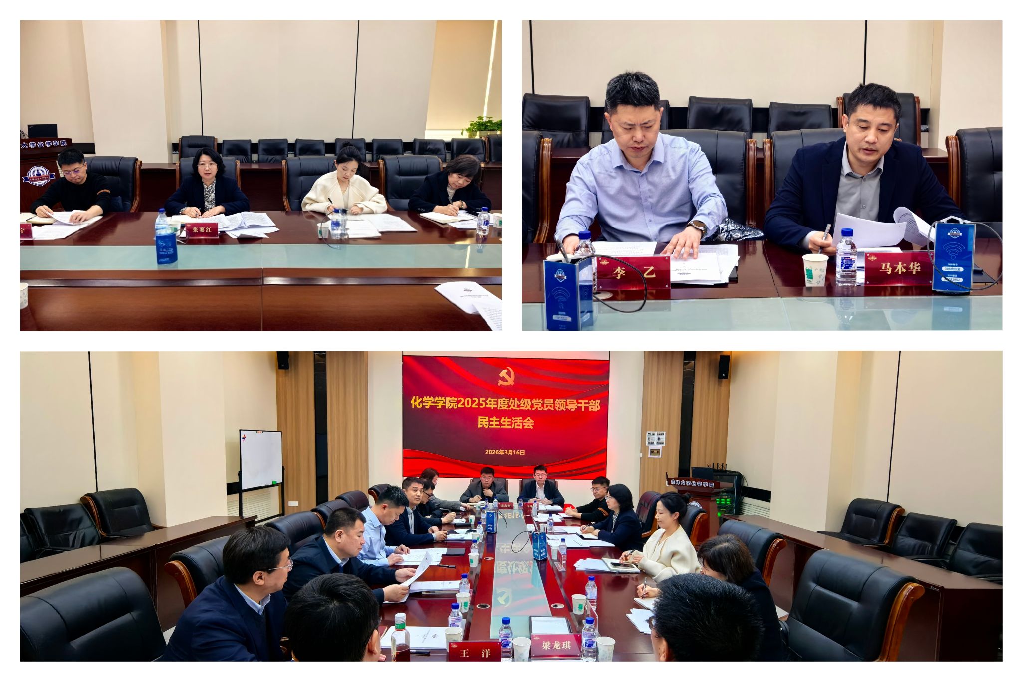 马本华代表学院领导班子作表态发言。他表示,学院领导班子将以此次民主生活会为新的起点,切实把会议成果转化为推动工作的强大动力:一是在强化思想引领、筑牢忠诚根基上持续用力,深学细悟党的创新理论;二是在深化标本兼治、推动建章立制上持续用力,健全完善长效工作机制;三是在严守纪律规矩、涵养优良学术生态上持续用力,营造风清气正的育人环境;四是在服务中心大局、提升履职质效上持续用力,以更高标准、更严要求、更实举措,团结带领全院师生攻坚克难、真抓实干,推动学院各项工作再上新台阶,为学校高质量发展贡献化学力量。