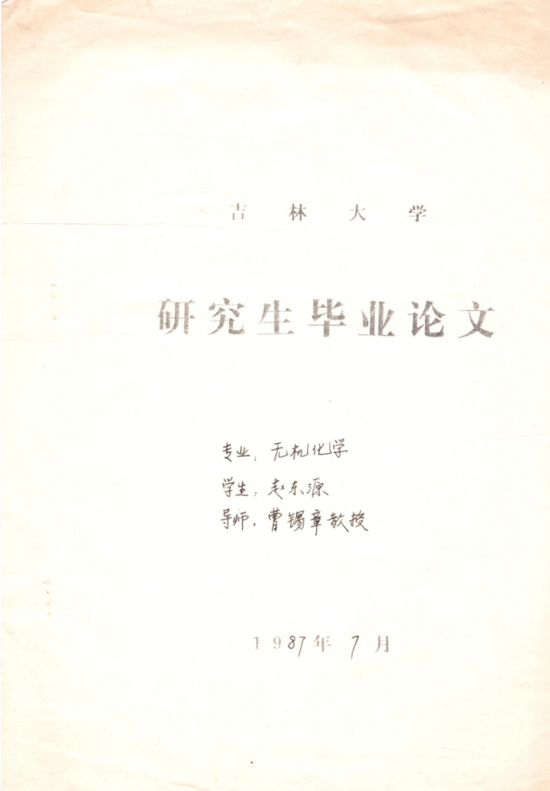 图7 1987年,硕士研究生毕业论文