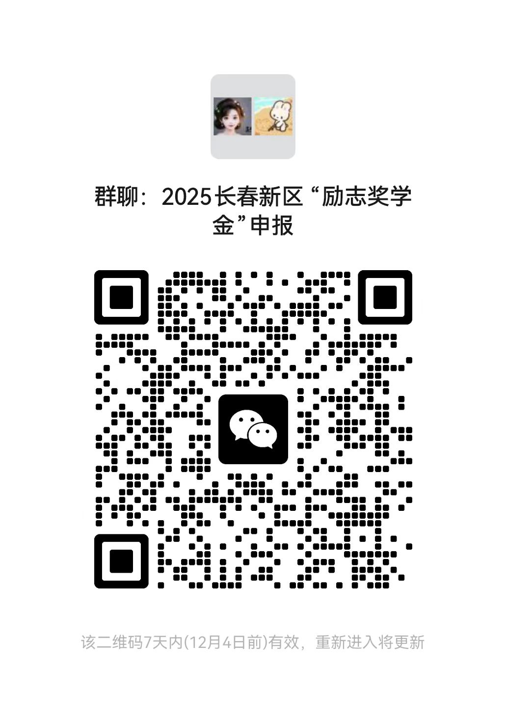 (3)报名研究生扫描二维码加入“2025长春新区“励志奖学金”申报群”。