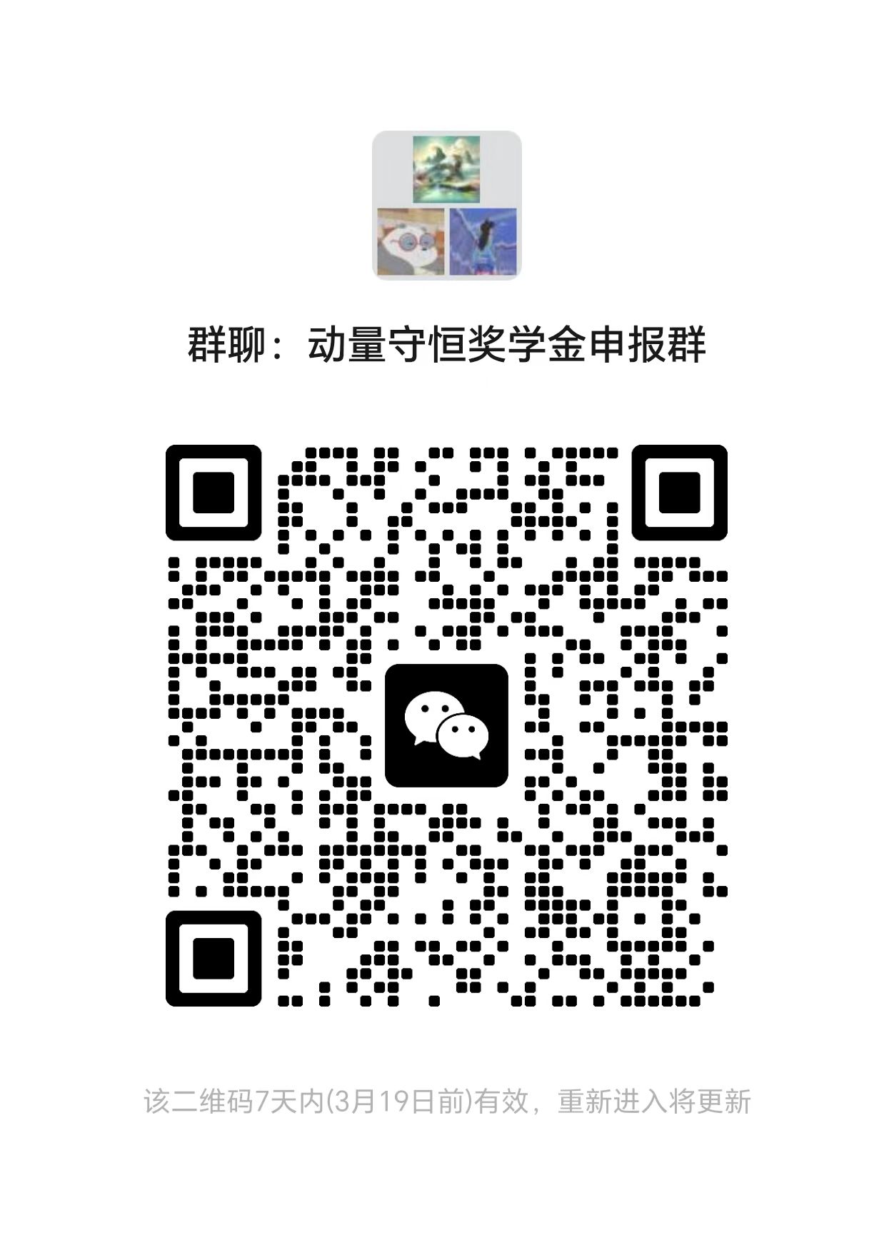 (1)申报人于3月13日12:00前使用个人邮箱账号登录“一张表”平台(//one.chengrenweb.net),在“研究生评奖评优管理”-“研究生评奖评优申报”栏,点击【新增】进行【动量守恒奖学金】信息填报,同时扫码加入申报微信群。