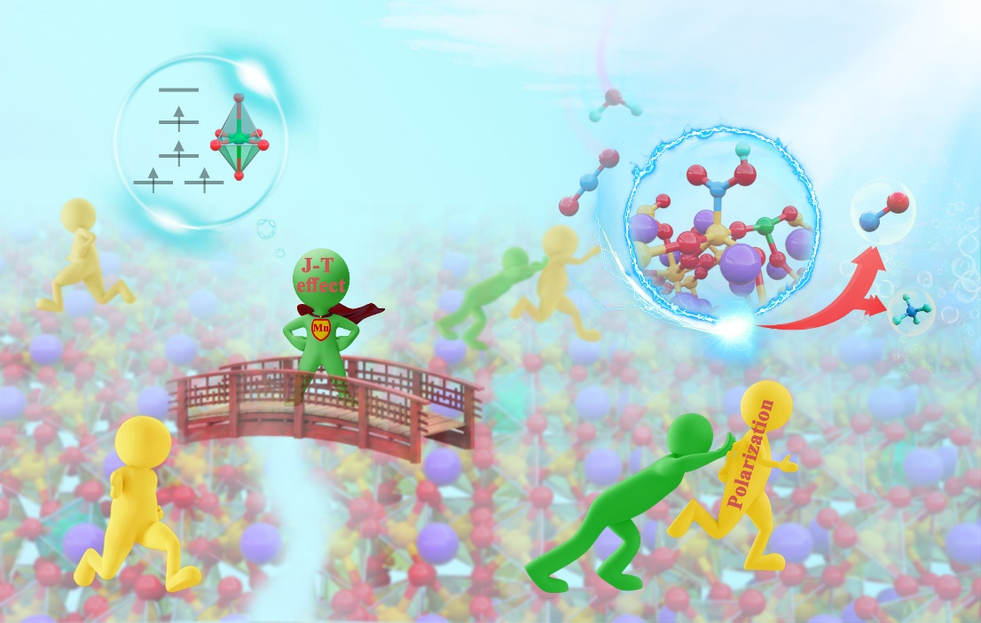 轴向位移,加剧FeO6八面体的不对称形变,形成定向极化。最终,在去极化电场驱动下,载流子快速分离促进CO2向CO的转化,在纯水条件下产率达到30.51 μmol·g⁻¹·h⁻¹,接近原始BiFeO3的五倍。该研究提出了通过Jahn-Teller畸变调控极化矢量的创新策略,从电子结构角度为铁电光催化剂的开发提供了新见解。