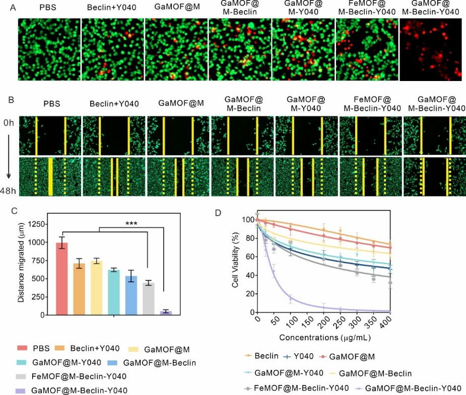 图3. GaMOF@M-Beclin-Y040的体外抗肿瘤活性