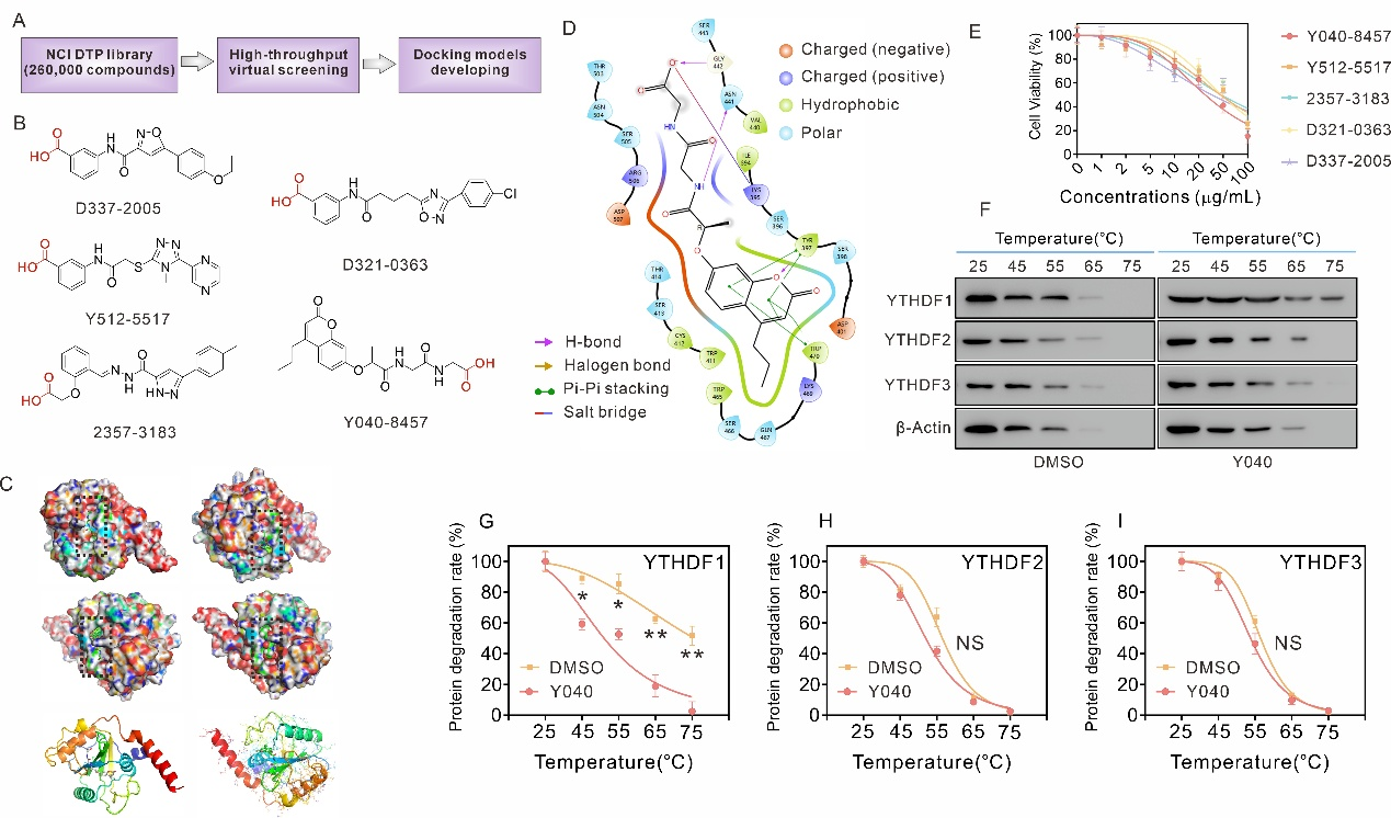 图1. YTHDF1特异性小分子结合剂Y040的筛选。