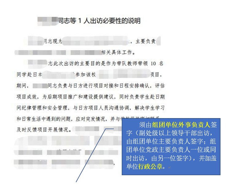 以上 3 项材料,签字盖章要求相同,以出访必要性说明为例, 如下图: