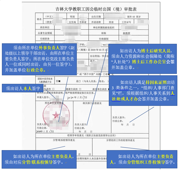 因公临时赴台任务须提交审查表,相关签字盖章要求如下图:
